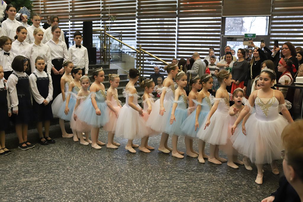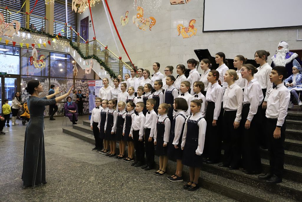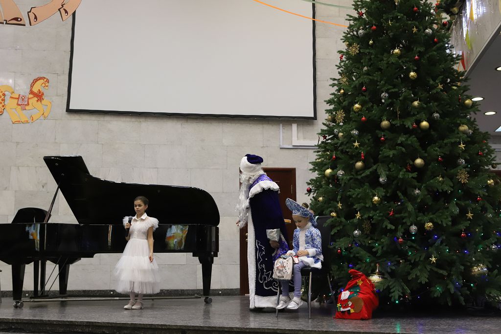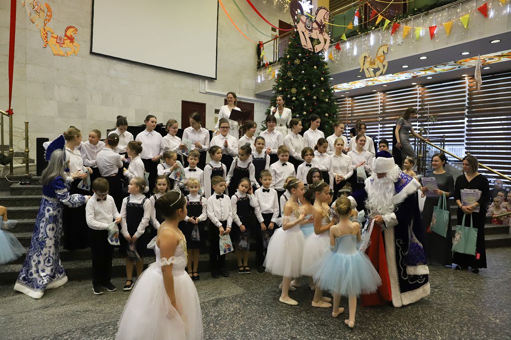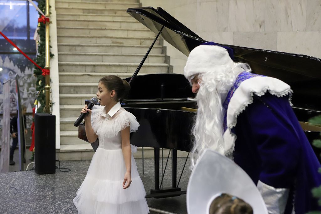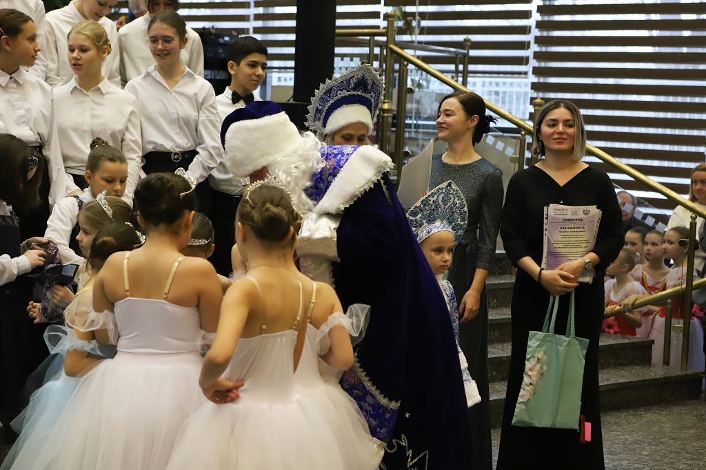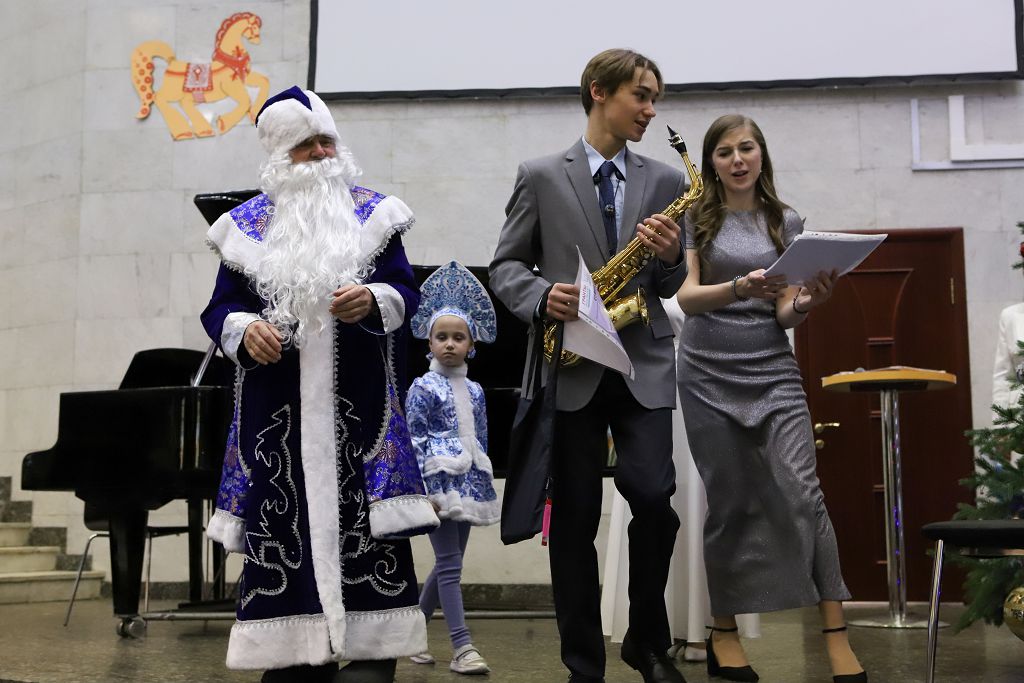 По окончании мастер-классов состоялась музыкальная гостиная классической , народной и современной музыки, на которой выступили учащиеся школы "МОРОЗКО", воспитанники Московских школ искусств, государственных общеобразовательных организаций, студенты Музыкальных ВУЗов, а также творческие коллективы, хоры и студии Москвы – победители конкурса «В ожидании Рождества» в номинации вокал и исполнительское мастерство. Выступили и дети с особенностями в развитии. Великолепно выступила ученица Интерната № 1 для слабовидящих и слепых детей, исполнив народную песню «Гармонь моя». Очень мощно начал музыкальную гостиную и завершил программу концерта Смешанный Хор Московской Школы Искусств № 17, которую вместе с хором представлял в этот раз Струнный оркестр скрипачей с прекрасным, новогодним репертуаром. Порадовали в очередной раз выступления скрипачей и пианистов музыкальной Школы им. В.В. Андреева, которая участвует во всех концертных программах Школы «МОРОЗКО». Всех привело в полный восторг великолепное выступление саксофониста и его концертмейстера – известного , виртуозного пианиста Васгена Вартаняна, преподавателя Первой Московской Школы Искусств им.Л.Оборина, которая также неизменно участвует во всех проектах Школы «МОРОЗКО». Замечательно выступили вокалистки , представляющие организаторов мероприятия - Школу «Морозко» . Завершила вокальную программу юная певица из Школы «Интеграция». Придали концерту волшебную, новогоднюю, праздничную атмосферу выступления театр Танца «Молодой Балет Москвы». Снежинки, девочки-цветочницы и Хитрая Лисичка очаровали зрителей.