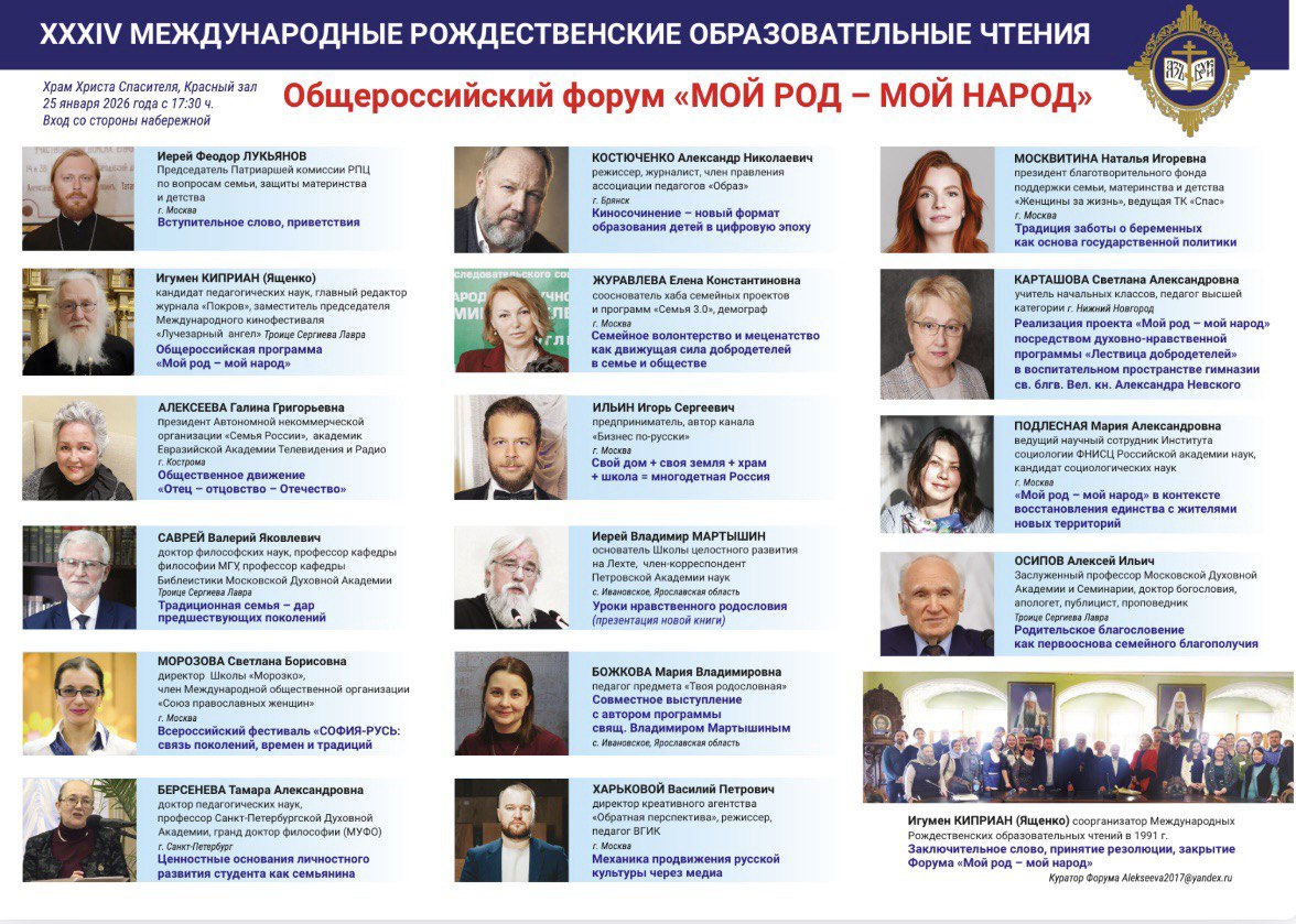 С 25-го по 29 января 2026 года в Москве проходят XXXIV-ые Международные Рождественские Образовательные Чтения «ПРОСВЕЩЕНИЕ И НРАВСТВЕННОСТЬ: ФОРМИРОВАНИЕ ЛИЧНОСТИ И ВЫЗОВЫ ВРЕМЕНИ».