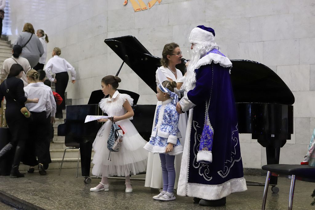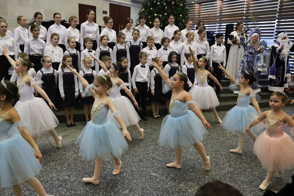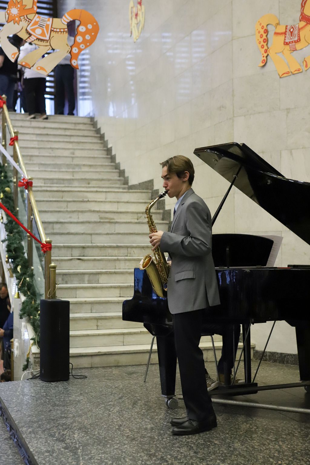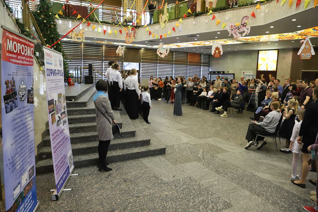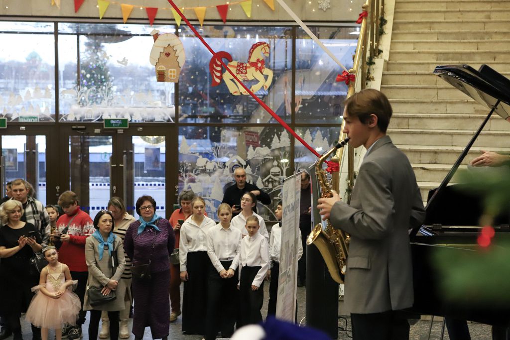 По окончании мастер-классов состоялась музыкальная гостиная классической , народной и современной музыки, на которой выступили учащиеся школы "МОРОЗКО", воспитанники Московских школ искусств, государственных общеобразовательных организаций, студенты Музыкальных ВУЗов, а также творческие коллективы, хоры и студии Москвы – победители конкурса «В ожидании Рождества» в номинации вокал и исполнительское мастерство. Выступили и дети с особенностями в развитии. Великолепно выступила ученица Интерната № 1 для слабовидящих и слепых детей, исполнив народную песню «Гармонь моя». Очень мощно начал музыкальную гостиную и завершил программу концерта Смешанный Хор Московской Школы Искусств № 17, которую вместе с хором представлял в этот раз Струнный оркестр скрипачей с прекрасным, новогодним репертуаром. Порадовали в очередной раз выступления скрипачей и пианистов музыкальной Школы им. В.В. Андреева, которая участвует во всех концертных программах Школы «МОРОЗКО». Всех привело в полный восторг великолепное выступление саксофониста и его концертмейстера – известного , виртуозного пианиста Васгена Вартаняна, преподавателя Первой Московской Школы Искусств им.Л.Оборина, которая также неизменно участвует во всех проектах Школы «МОРОЗКО». Замечательно выступили вокалистки , представляющие организаторов мероприятия - Школу «Морозко» . Завершила вокальную программу юная певица из Школы «Интеграция». Придали концерту волшебную, новогоднюю, праздничную атмосферу выступления театр Танца «Молодой Балет Москвы». Снежинки, девочки-цветочницы и Хитрая Лисичка очаровали зрителей.