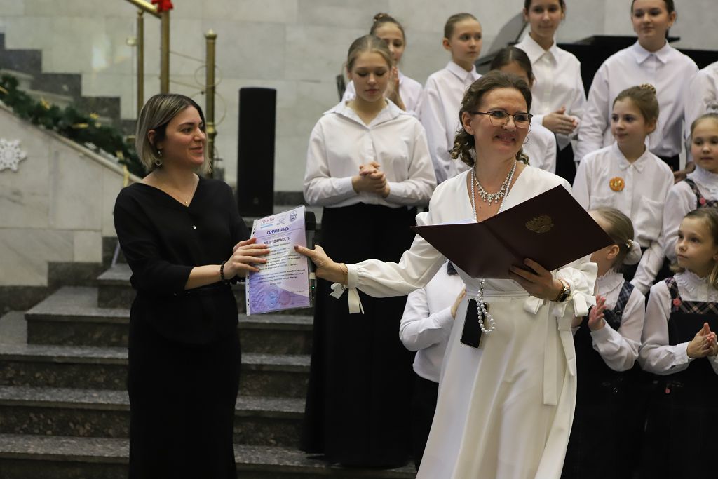 После музыкальной гостиной и мастер-классов по ИЗО и ДПИ прошло торжественное награждение победителей фестиваля-конкурса «В ожидании Рождества». Победителям были вручены не только дипломы, но и памятные подарки, которые подготовили и ередали организатором фестиваля спонсоры: фирма «ЭРИК КРАУЗЕ», ООО «Научные развлечения» , компания «Интеллектуальные игры Татьяны Барчан». В музыкальной гостиной участвовало 139 призера конкурса. Все они получили подарки, а вместе с победителями были награждены и педагоги, благодаря которым ребята достигли столь высоких результатов.