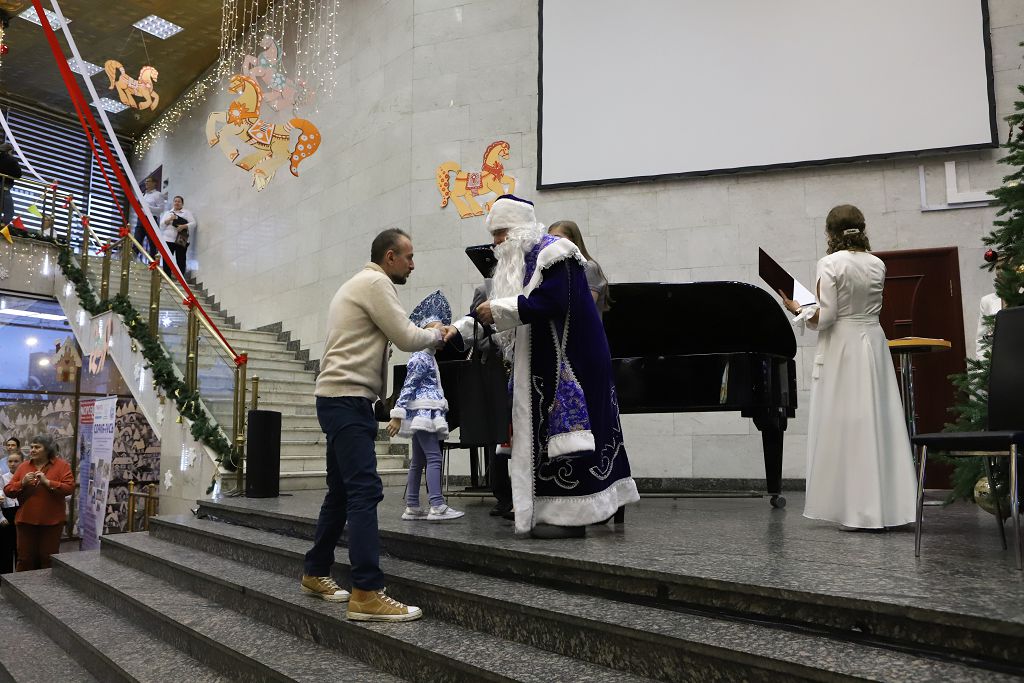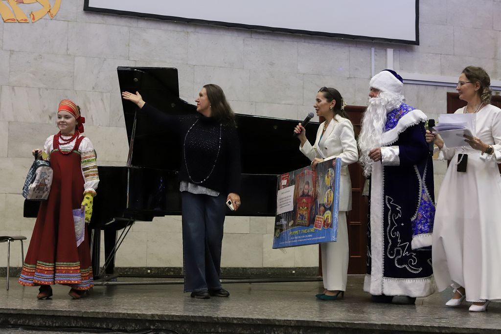 Генеральный директор компании «Научные развлечения» Олег Александрович Поваляев передал в качестве подарков мини-лаборатории для детей дошкольного и младшего школьного возраста. А Татьяна Барчан передала головоломки и интеллектуальные игры для победителей фестиваля «В ОЖИДАНИИ РОЖДЕСТВА».