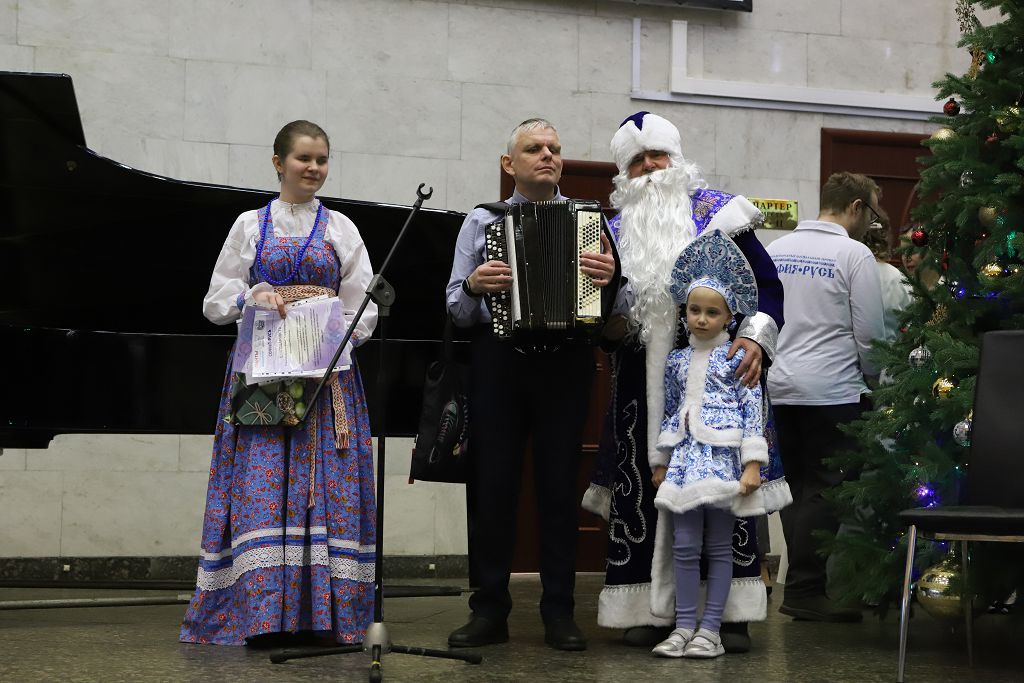 После музыкальной гостиной и награждения победителей все гости были приглашены в Концертный зал, где начался новогодний спектакль «Сказ про то, как Иван, Степан , да Емельян счастье искали». Режиссер- Куликова Я.А., хореограф-постановщик – Пенькова Т.С.