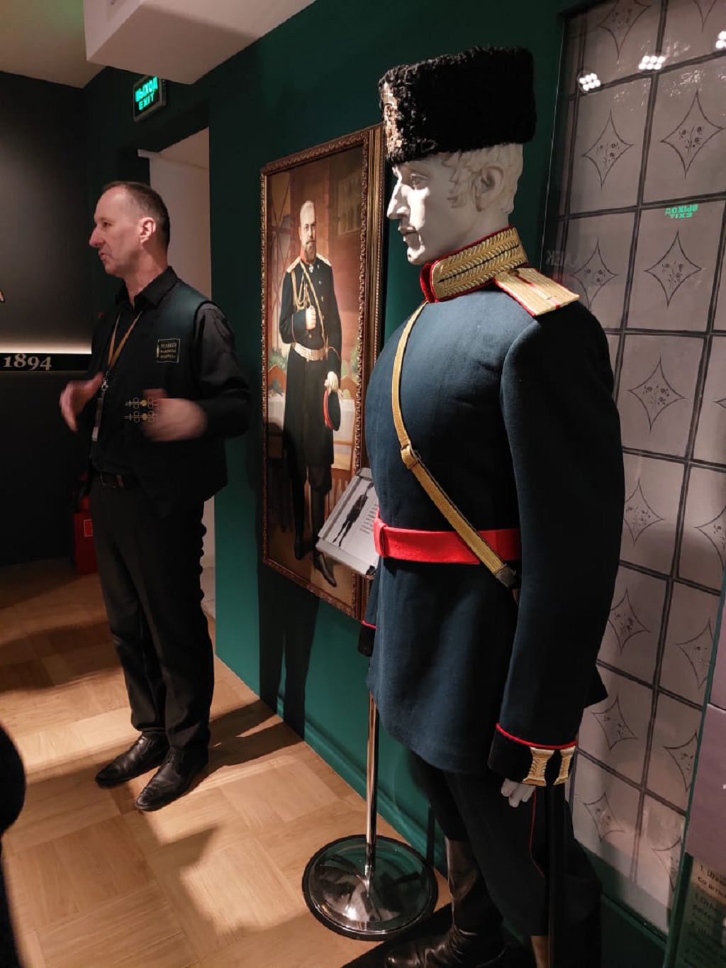 Замечательный экскурсовод Денис Викторович очень интересно рассказал о том, какое место занимал мундир в жизни служилого человека, как возникло само понятие — «честь мундира» и почему в среде профессиональных военных оно неотделимо от образа защитника Отечества.