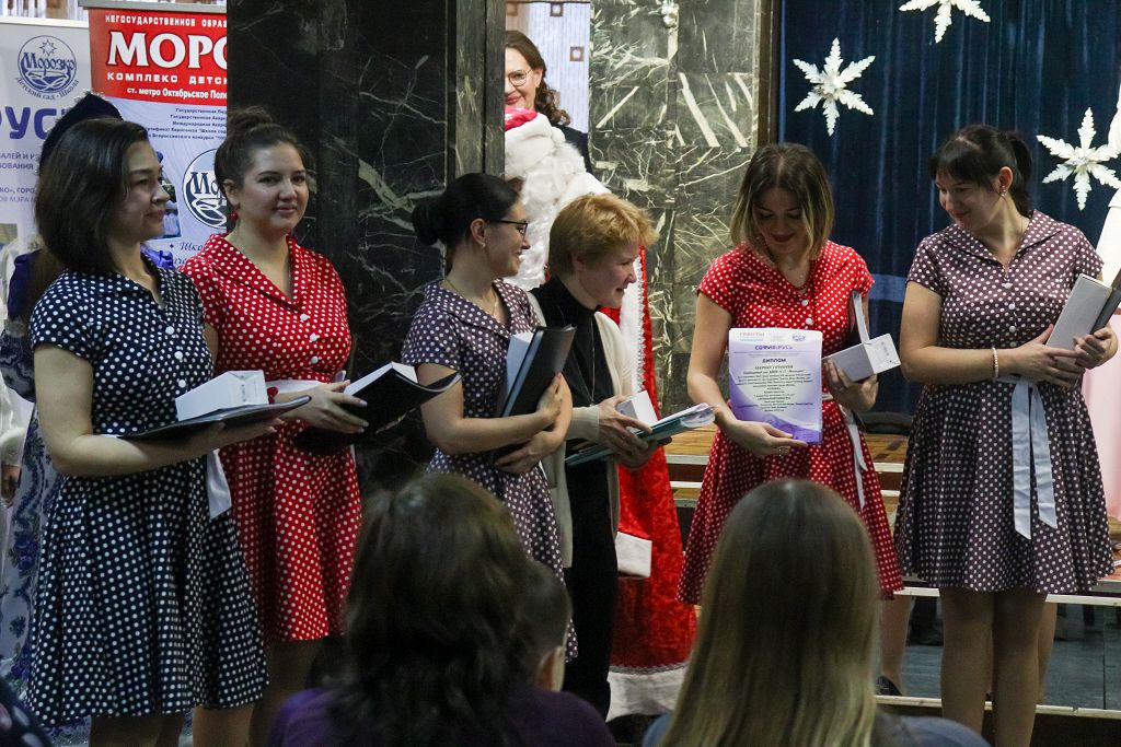 После музыкальной гостиной и мастер-классов состоялось торжественное награждение победителей фестиваля-конкурса «В ожидании Рождества». Победителям были вручены дипломы и памятные подарки, которые подготовили для ребят спонсоры нашего мероприятия ООО Приор Групп. Затем в фойе началась анимационная, развлекательная программа с Дедом Морозом и Снегурочкой. Наших маленьких гостей встречали волонтеры - студенты Московского Социально- Педагогического Института и Медиа Института «Останкино». Но, конечно, самым ярким и значительным событием дня стала новогодняя сказка, которая была показана на большой сцене Дома Культуры «Красный Октябрь». Режиссер- Куликова Я.А., хореограф-постановщик – Пенькова Т.С. В музыкально-театрализованном представлении «Снежная история» участвовали дети и взрослые – ученики и педагоги Школы «Морозко», профессиональные артисты, вокалисты, танцоры, хореографические коллективы, среди которых - победители Танцевального Марафона «Танец как искусство жизни»: ведущий творческий коллектив города Москвы «Аврора», танцевальная студия «ГАЛАКТИКА».