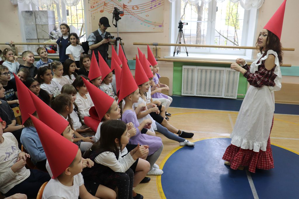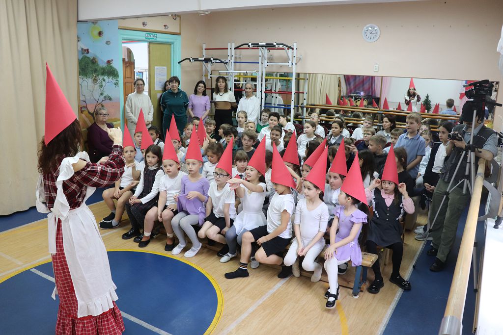 Благодаря музыкальному спектаклю воспитанники детского сада и ученики Школы «Морозко» отправились в увлекательное путешествие вместе со сказочными героями и гномиком Мо, которые ожили со страниц этой книги.